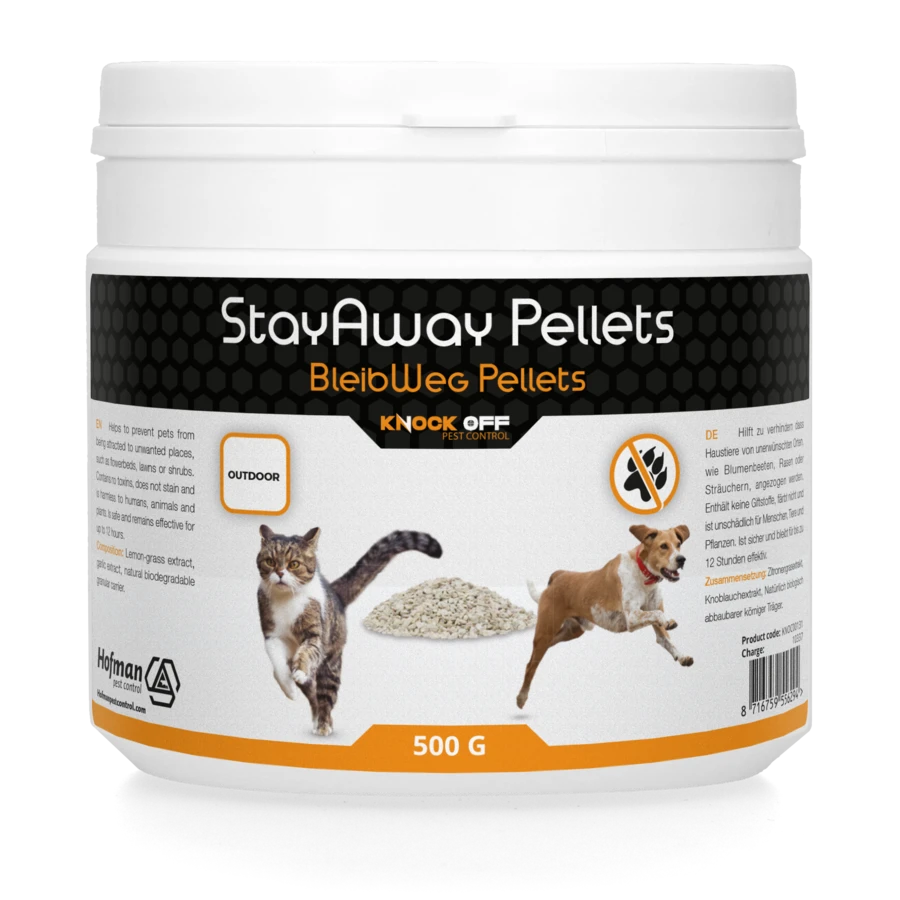 Helpt voorkomen dat huisdieren worden aangetrokken door ongewenste plaatsen, zoals bloemperken, gazons of struiken. Knock Off Stay Away bevat geen gifstoffen, vlekt niet en is onschadelijk voor mens, dier en plant. Knock Off Stay Away blijft tot 12 uur effectief.