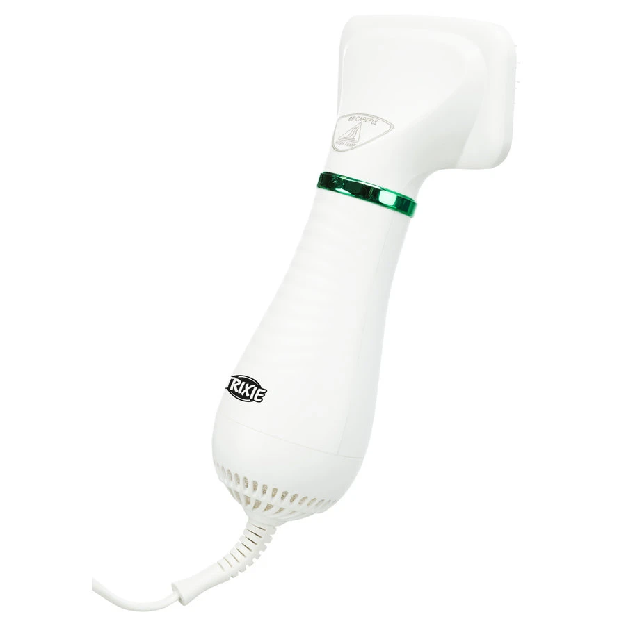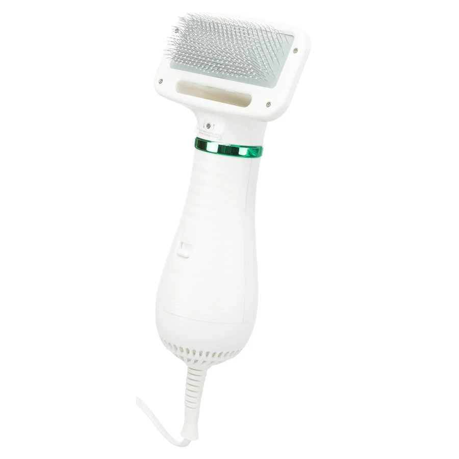 Warmelucht-borstel waarmee u de vacht van gevoelige en angstige dieren kunt borstelen. Dit komt omdat de borstel een rustige en vooral stille motor heeft. Borstel met haren en noppen van kunststof. Deze borstel heeft 2 warmte niveau’s en een verwisselbare borstelkop (apart verkrijgbaar). De borstel is gemaakt van kunststof en is geschikt voor de meeste vachttypes. Met 2 jaar garantie.